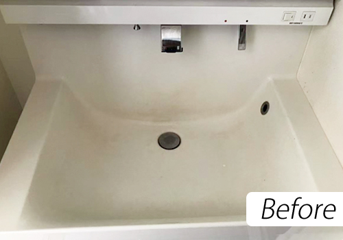 | 洗面所 | 水垢や石けんカスが付着し黒ずみが目立つ。 | ✨ 黒ずみが落ち、明るく衛生的な洗面所に改善。 |